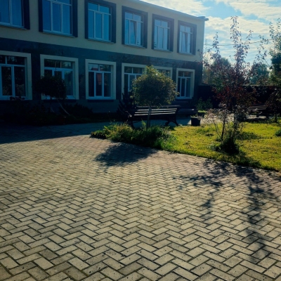 Помимо внешнего благоустройства и ремонта внешних фасадов здания, был проведен ремонт внутри помещений: окрашены стены, везде заменен пол, а также плитка в столовой.